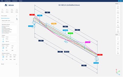 Aplikacja służy do doboru podpór dla rurociągów i kanałów wentylacyjnych wykonanych z elementów produkowanych przez firmę THALE SP. z o.o. Sp.k. Przemieszczenia, siły wewnętrzne i reakcje program wyznacza Metodą Elementów Skończonych. Kryterium oceny poprawności zastosowania danego profilu to dopuszczalne naprężenia od zginania określone w bazie danych (np. 160MPa) oraz dopuszczalne ugięcia poszczególnych przęseł (L/200). Program zakłada brak możliwości zwichrzenia szyn montażowych.