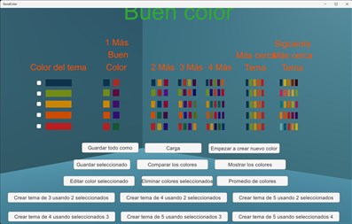 Buen color te ayuda a elegir un buen color. Te ayuda a hacerlo de muchas maneras diferentes. Principalmente utiliza la teoría de la rueda de colores para permitirle elegir un color o colores que "vayan con" uno o más colores iniciales. Otras formas en que te ayuda a elegir un color son: