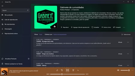 Groove Pro es la mejor aplicación para gestionar tus podcasts favoritos en Windows.
