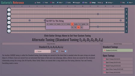 ???? Alternate Tunings Explored: Dive deep into 36 of the most popular alternate tunings, expanding your creative horizons. Whether you're in Standard or Alternate Tuning, access Scales, Arpeggios, and Fretboard Notes effortlessly. Guitar Tuner: Our improved tuning feature now allows you to tune your guitar by ear across a wide range of preset alternate tunings.
