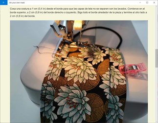 Puede seleccionar dos tipos diferentes de instrucciones: con máquina de coser o a mano. Ambos incluyen imágenes, pasos fáciles de seguir y consejos para ayudar al usuario.