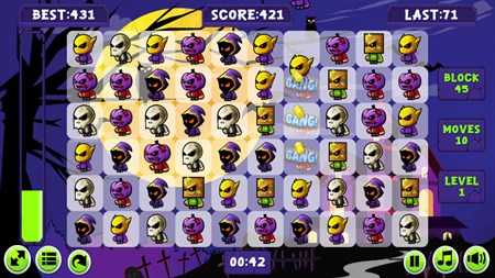 Halloween Match-3 is cool game three in a row. Swap blocks in order to make a group of 3 or more identical halloween items adjacent horizontally or vertically. Keep matching till you unlock and clear all the tiles. Use power-ups to speed up the process. Enjoy the game!