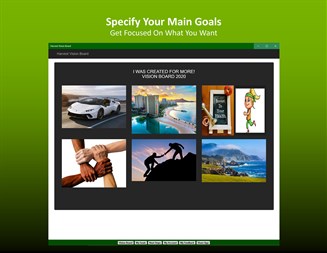 - Create Vision Boards To Accomplish Your Goals - Create Multiple Vision Boards As Needed and Desired - Choose From Various Backgrounds - Create Key Milestones with Target and Completion Dates - Create Major and Minor Tasks within Each Milestone - Keep Track of Specific Notes at Each Level - Special Recognition (within your app) For Completed Goals - 'Next Step' Button Reminds You of Your Next Priorities - Always Keep Your Vision Board With You and Before You - Accessible Via Mobile Phone, Tablet or Desktop App - Take Your Business/Personal Vision and Your Life to the Next Level