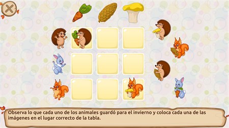 La trama es alternada con tareas educativas, mini-juegos y rompecabezas para que los niños de pre-escolar entrenen la memoria, atención y lógica. Esta combinación mantiene a los niños comprometidos mientras realizan estos útiles ejercicios cognitivos para el cerebro. Los mini-juegos también están disponibles individualmente, con 4 niveles de dificultad cada uno. Este juego educativo para Android fue desarrollado por una psicóloga de niños y profesional de educación pre-escolar.