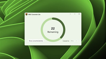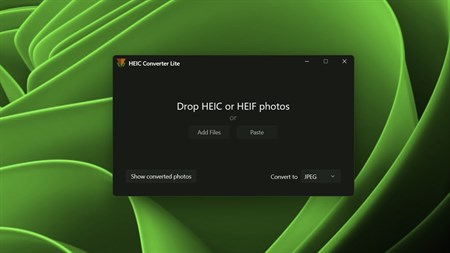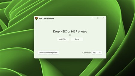 [How to convert] • Drag and drop your photos onto the HEIC Converter Lite window (from File Explorer) or • Right-click a HEIC or HEIF in File Explorer and select "Open With" / "HEIC Converter Lite"