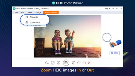 • View HEIC Images and save them as JPG. • Drag and drop the HEIC files for viewing. • Rotate HEIC images clockwise or counterclockwise. • Flip HEIC images vertically or horizontally. • Zoom HEIC images in and out. • Copy the HEIC image or its path to use the picture.