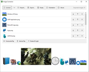 Image Connector is an app for connecting imported images in one single image either horizontally, vertically or shaping grid. The user can experiment with different alignments, space between images and also add a border to each image.