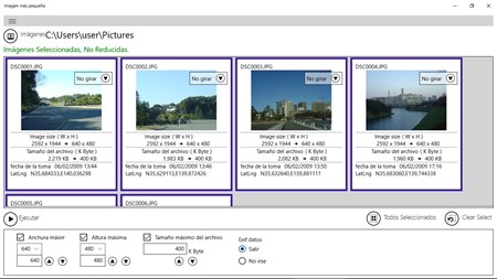 "Imagen más pequeña" reduce dos o más imágenes, como una fotografía, colectivamente. Puede especificar el tamaño de imagen y el tamaño del archivo en la reducción. La opción de dejar o no dejar la fotografía (Exif) incluyendo la ubicación es posible. Además, es posible la designación rotaria de la imagen individual.