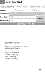 Con el peso ideal y el IMC se puede controlar su índice de masa corporal tranquilamente, comprobando si está por encima o no su peso ideal, viendo su comida.
