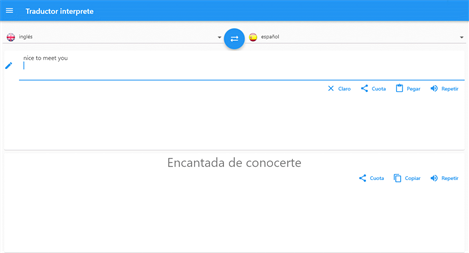 Si está buscando una aplicación de traducción simple para convertir su texto, voz, audio, documentos e imágenes a cualquier idioma deseado. No se preocupe, simplemente instale la aplicación de traductor Interpreter y obtenga la traducción en casi todos los idiomas. El intérprete traduce el texto y lo lee por usted en uno de los 121 (*) idiomas y 65 voces.