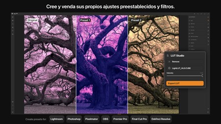• Cree y venda ajustes preestablecidos/LUT para Adobe Lightroom, Photoshop, Premier Pro, DaVinci Resolve, Final Cut Pro, Pixelmator y OBS.