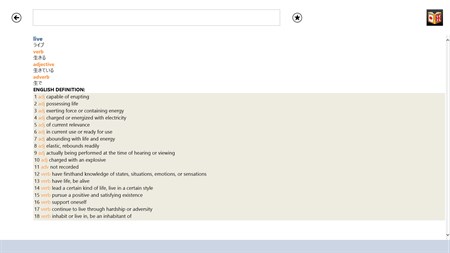 With its clear definitions and carefully chosen up-to-date vocabulary from all areas of life the Japanese - English - Japanese dictionary will meet your everyday language needs and will make your trips more comfortable and fun. *10,000 most frequently used words from each language *Additional English explanation for all English headwords to help you enrich your language *A selection of the most frequently used words in everyday language *Quick search of words while you type *Fast article scrolling *History to see the last 50 words you have looked up *Filters to help you locate the word you are searching for