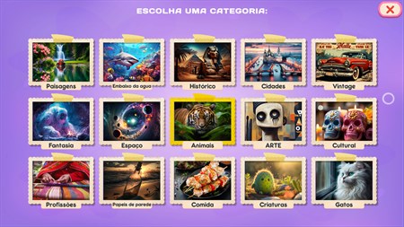 ???? Sumérgete en una extensa colección de rompecabezas, cada uno diseñado para capturar y desafiar. Recorre una variedad ecléctica de temas, incluyendo ARTE, Vida Salvaje, Maravillas Geográficas, Océano, Exploración Espacial, Fantasía, Vintage y más. Cada categoría ofrece una narrativa única y un conjunto diverso de imágenes para armar.