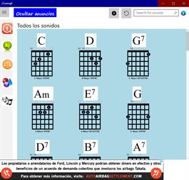 Esta aplicación le permite al usuario seleccionar el tono de cada cuerda en una guitarra con el propósito de afinar. El tono se puede reproducir seleccionando la imagen asociada con la cuerda a afinar. La aplicación permite hacer un bucle del tono para repetir el sonido hasta que el usuario esté satisfecho con afinar la cadena adecuada. Los controles de usuario en la parte superior de la aplicación están codificados por colores cuando están activos y regresan a gris claro cuando están inactivos. Se proporcionan varios sonidos de acordes para que la selección apoye el proceso de afinación.