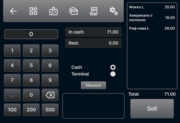 Kavapp Seller es la parte principal del servicio de Kavapp. Al instalar esta aplicación en su cafetería, obtendrá una potente funcionalidad para mejorar y automatizar su negocio, a saber: contabilidad de horas de trabajo de los empleados, ventas (efectivo, terminal o bonos), impresión de cheques, fiscalización de cheques vendidos y cambios a través de OPSR directamente en el impuesto, contabilizando bienes e ingredientes dados de baja al vender artículos de acuerdo con la tecnología. tarjetas, cancelación de productos e ingredientes, recaudación de fondos, preparación de elementos de menú individuales (postres, pasteles, etc.) en el acto con cancelación de ingredientes utilizados en el proceso de preparación, recálculo al principio y al final de el cambio para informes y control precisos de los empleados, y otras funciones de informes y control de su cafetería. Es más fácil y rentable trabajar con Kavapp Seller.