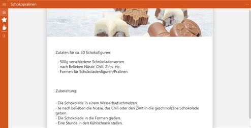Kleine Weihnachtsbäckerei Die Back- und Koch-App bietet Ihnen 15 verschiedene Rezepte zum Nachmachen, um die Weihnachtszeit zu versüßen. Von Weihnachtsplätzchen über Marmelade bis zum Weihnachtslikör ist für jeden etwas dabei.