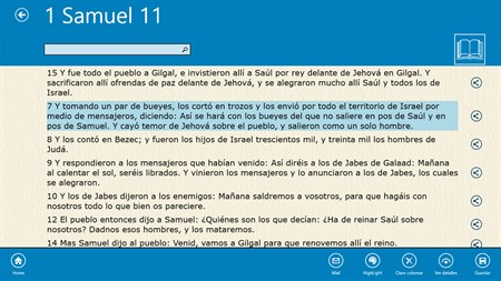 This is the Bible in Spanish complete with all books and chapters. You can search the complete bible for different subjects, create folders of different verses and even write your own prayers.