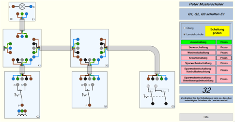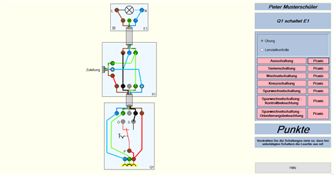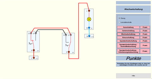 Installationsschaltungen: Die Verdrahtung von Installationsschaltungen wird geübt und die Funktionsweisen der verschiedenen Schaltungen durch Simulation anschaulich dargestellt.