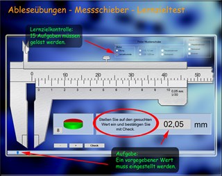 Ein Lernzieltest, bei dem zufällige Werte eingestellt werden müssen oder eingestellte Werte abgelesen werden müssen, rundet diese Übung ab.