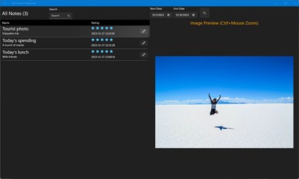 Simplify operations, remove complicated features, and focus on taking notes. Retrieve notes quickly. Use two time periods to filter the retrieval notes. You can also rate yourself when you write a diary (1-5 stars are optional, 5 stars by default). You can add 1 picture to each journal.