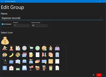 Use groups to manage your notes. View the notes associated with each group. Custom group management (built-in 152 icons). Each group can set an access password, and the notes can be accessed after the password is successfully verified.