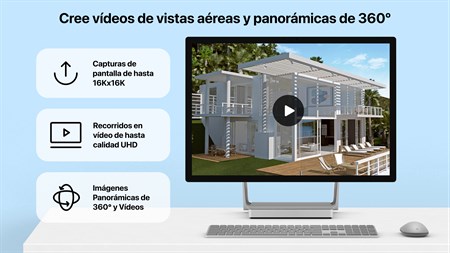 • Crear diseños detallados de planos de planta en 2D. • Caminar por los diseños interiores en 3D. • Perfeccionar sus habilidades de diseño con las muestras preconfiguradas de diseño de casas e interiores (cocinas, baños, salas de estar, etc.). • Añadir y mueva muebles y otros objetos (más de 2.400 elementos) y aplicar materiales basados en la física (más de 2.100 materiales suministrados). • Crear un terreno elaborado con líneas de elevación y hoyos, añada una entrada para vehículos y planifique su patio o jardín.* • Importar modelos 3D de otras aplicaciones en todos los formatos más populares. • Conseguir una iluminación natural configurando la geolocalización, la hora del día y la nubosidad reales. • Trabajar en la vista de elevación 2D que muestra la vista lateral en paredes y cubiertas, una herramienta perfecta para trabajar con aberturas, nichos y paneles murales.* • Trabajar con techos personalizables o crear ventanas esquineras y aberturas complejas. • Generar vídeos realistas recorriendo interiores y exteriores de las casas con calidad de exportación hasta Ultra HD.** • Crear vídeo 3D estéreo, vídeo de 360°, vídeo de 360° 3D estéreo e imágenes panorámicas JPEG de 360°.** • Exportar todo el diseño de la casa o varios objetos en formato FBX, glTF u OBJ. ¡Y mucho más!**