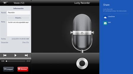 Lucky Recorder es una grabadora de voz profesional. Se trata de un sencillo, divertido y fácil de usar de audio y grabadora de voz. Se usa para grabar reuniones, conferencias y notas personales, y sin límites de tiempo. Puede reproducir y compartir sus grabaciones.