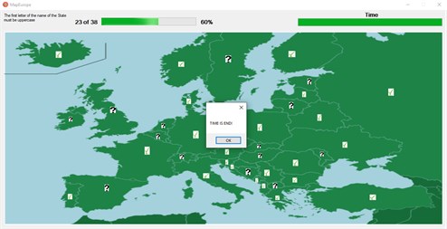 This application is educational in nature. It does not require any information from the user. Helps younger people learn the names and places of the Country on the map of Europe. Easy to use and can be used by the youngest. Each question mark on the map of Europe is one country and you must enter the correct answer in the TextBox. Time to give correct answers to all States is 30 minutes. Good luck! Learn and enjoy!!!
