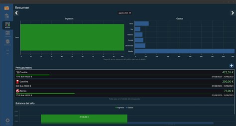 Seguimiento de Ingresos y Gastos: + Visualiza tus patrones de gastos a lo largo del tiempo con gráficos claros y resúmenes mensuales. + Comprende en qué estás gastando tu dinero y toma decisiones más inteligentes.