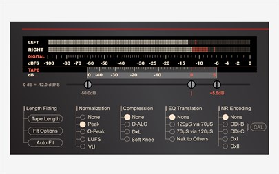 ● Tape Length Fitting - Auto arrangement (side A/B) - Silence padding/trimming - Fadeout or crossfade - Total time display ● Level Normalization - Peak - Quasi-Peak - VU - LUFS ● Compression - D-ALC - DxL - SoftKnee ● EQ Translation - 120μS/70μS - Nakamichi/Others ● NR Encoding - DDi-B (Dolby-B compatible) - DDi-C (Dolby-C compatible) - DxI (dbx-I compatible) - DxII (dbx-II compatible) ● Level Meter - dBFS - PPM - VU ● Level Calibration - None - Basic - Advanced - DDi (Dolby-B/C equivalent) - Peak index ● Output - Playlist (m3u8) - Master audio - Auxiliary audio (reference tone 0dB/Dolby) - Live audio - Track list