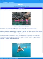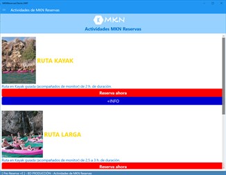 Crear Pre-Reservas de los productos de MKN (Maro - Kayak Nerja) para las actividades de alquiler por libre y rutas guiadas con monitor por los acantilados de Maro- Cerro Gordo en Andalucía, en el sur de España. También ofrecemos otras actividades, como buceo (Discover Scuba Diving), tours de snorkel, barranquismo en Río Verde (Granada), rutas de montañismo/senderismo por el entorno del Parque Natural de las Sierras de Almijara, Tejeda y Alhama.