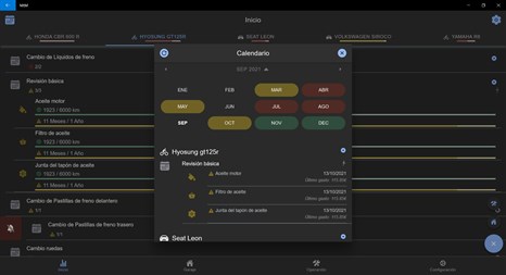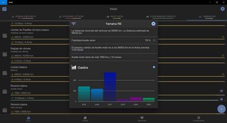 Aplicación para gestionar los mantenimientos de los vehículos personales sin necesidad de recordar cuándo se realizó una revisión y cuánto queda para el siguiente cambio de aceite de su moto o coche.