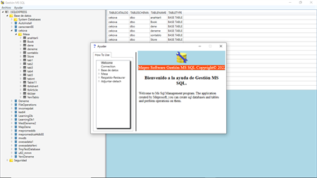 Aplicación de escritorio fácil de usar para crear y editar bases de datos y tablas en el servidor SQL.