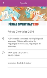 Application that aims to promote news and events, spread of information and tourist and cultural promotion of the municipality of Reguengos de Monsaraz. The group of features will soon be available and the municipality will be able to communicate and receive direct feedback from the citizens, by providing some services. Key features: . Consultation of local information . Cultural agenda . Consultation of news, . Notifications; . Sending of occurrences . Weather informations; . Sugestions; . Large item collection; . Pharmacies; . Water counter; . Civil Protection.