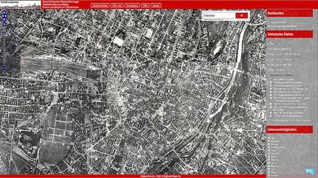 alte Stadtmodelle Katasterkarten und Uraufnahmen, Katastrophenkarten und Luftangriffe, Stadtentwicklungskarten, Luft- und Satellitenaufnahmen verschiedener Epochen Baulinien Stadtbäche Interessante Gebäude, Sehenswürdigkeiten, alte Luftaufnahmen.