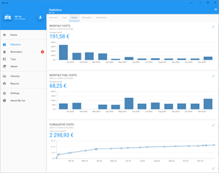 My Car es la mejor aplicación para organizar toda la información relacionada a tu vehiculo. Lleva el seguimiento de los costos asociados y la eficiencia del combustible, agrega notas y recordatorios, agrega fotos al album de tu vehiculo y más. Podrás ver y analizar estadisticas interesantes y gráficos relacionados a tu vehiculo.