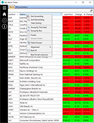 In Settings, search for your symbol to add it to your list. Right click on the Symbol to delete. On the main Home screen check out the many column options by clicking or right clicking on a column header!