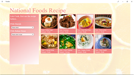National Food Receipt merupakan aplikasi yang berisi resep masakan nusantara yang berasal dari berbagai daerah di Indonesia. Resep yang ada, didedikasikan kepada anda dengan hobi memasak maupun yang membutuhkan. Di rancang secara khusus untuk pemula yang ingin belajar memasak secara praktis dan mudah. Memiliki fitur yang sangat membantu di sertai dengan user interface yang menarik.