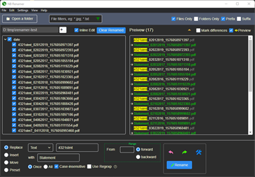 NB Renamer is a free bulk renaming tool. Compared to other batch renaming software, it has a dynamic and interactive interface. It automatically populates parameters for you when click or select on the file names and will preview the changes before the actual renaming takes place. Combining a succinct design with meticulous implementation, it strives to makes the whole batch renaming process easier and intuitive.