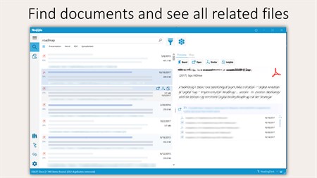 Noggle is a standalone desktop and cloud search application for a less time-consuming and more productive approach to find the knowledge you need. Take the stress out of searching and quickly find any document, anywhere. Search your documents or images, see related files or photos, and get insights of your desktop or cloud based documents, without having to re-organize files.