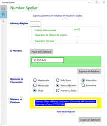 Una aplicación que permite expresar números enteros de hasta 15 dígitos en palabras, ya sea en inglés o en español. Ideal para abogados, gestión de contratos, finanzas, comercio, notarios, traductores, profesores, estudiantes, etc.