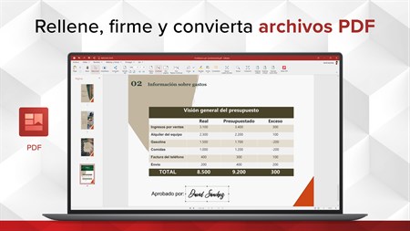 • Abre, lee y anota archivos PDF. • Trabaja con formularios rellenables. • Firma digitalmente documentos PDF. • Gestión de permisos y seguridad mejorada. • Convierte documentos PDF a Word, Excel o ePub.