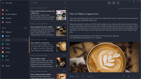 One Jotter es una aplicación de libreta y bloc de notas fácil de usar, perfecta para organizar notas y registrar ideas. Te permite mantener todo organizado y evitar el desorden. Puede usarlo para editar archivos de texto sin formato o guardar notas en formato RTF. También admite escritura y vista previa en formato Markdown (CommonMark).