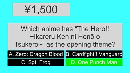 Players will encounter a wide range of questions on anime and manga topics with varying degrees of difficulty. Correct answers earn points that move the player up the ranks; incorrect answers result in lost points.