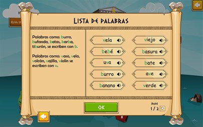 Palabras sin problemas hace que el aprendizaje sea divertido ofreciendo un banco de 400 palabras que cubren 40 grafías en 2 niveles de dificultad.