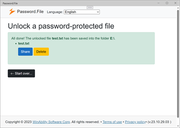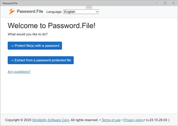 If you need to send sensitive files (such as bank statements or a tax return) to someone over insecure channels (such as email), you can use Password.File to put the file(s) inside of a password-protected and AES-encrypted container and send the container file instead. Call the recipient and tell them the password you've chosen, and they would use Password.File to extract the original files from the container and save them to their own device.