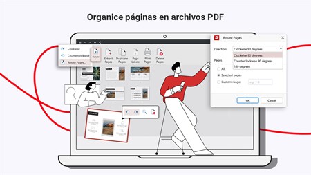 Inserta y elimina páginas, así como rótalas, duplícalas e incluso extráelas sin problemas gracias a la rápida e intuitiva interfaz de arrastrar y soltar. También puedes fusionar o dividir documentos fácilmente o incluso comprimirlos para reducir su tamaño sin que ello afecte a la calidad general.