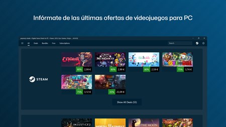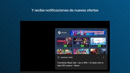 Esta aplicación ofrece funciones avanzadas como notificaciones push y consultar juegos con ofertas de tu lista de deseados de Steam.