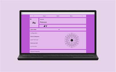 Obtenga información completa sobre todos los elementos químicos con Periodica. Haga clic en un elemento de la página de resumen visualmente atractivo para obtener información detallada sobre las propiedades de un elemento. Utilice la vista de lista para clasificar y filtrar elementos y obtener una vista general rápida de las propiedades importantes. O cambie el modo de coloración para colorear la tabla periódica por categoría, bloque o estado.