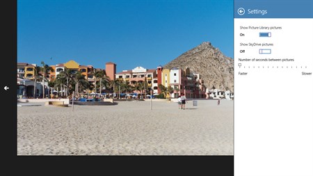 When not using your tablet turn it into a digital picture frame with Photo View. Photo View displays pictures from your local picture library or from Microsoft SkyDrive. Photo View displays additional information such as location, camera used and date taken if available.